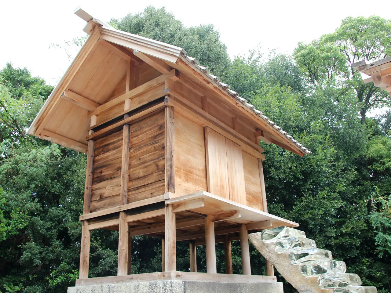結合江戶時代開始受到人們供奉的護王神社的改建,由杉本博司進行了改建設計。石室和正殿由玻璃階梯連接,使得地下和地上形成一個連通的世界。正殿和前殿,以伊勢神宮等初期神社建築的樣式為參考,進而由創作者根據自身的審美意識進行設計。