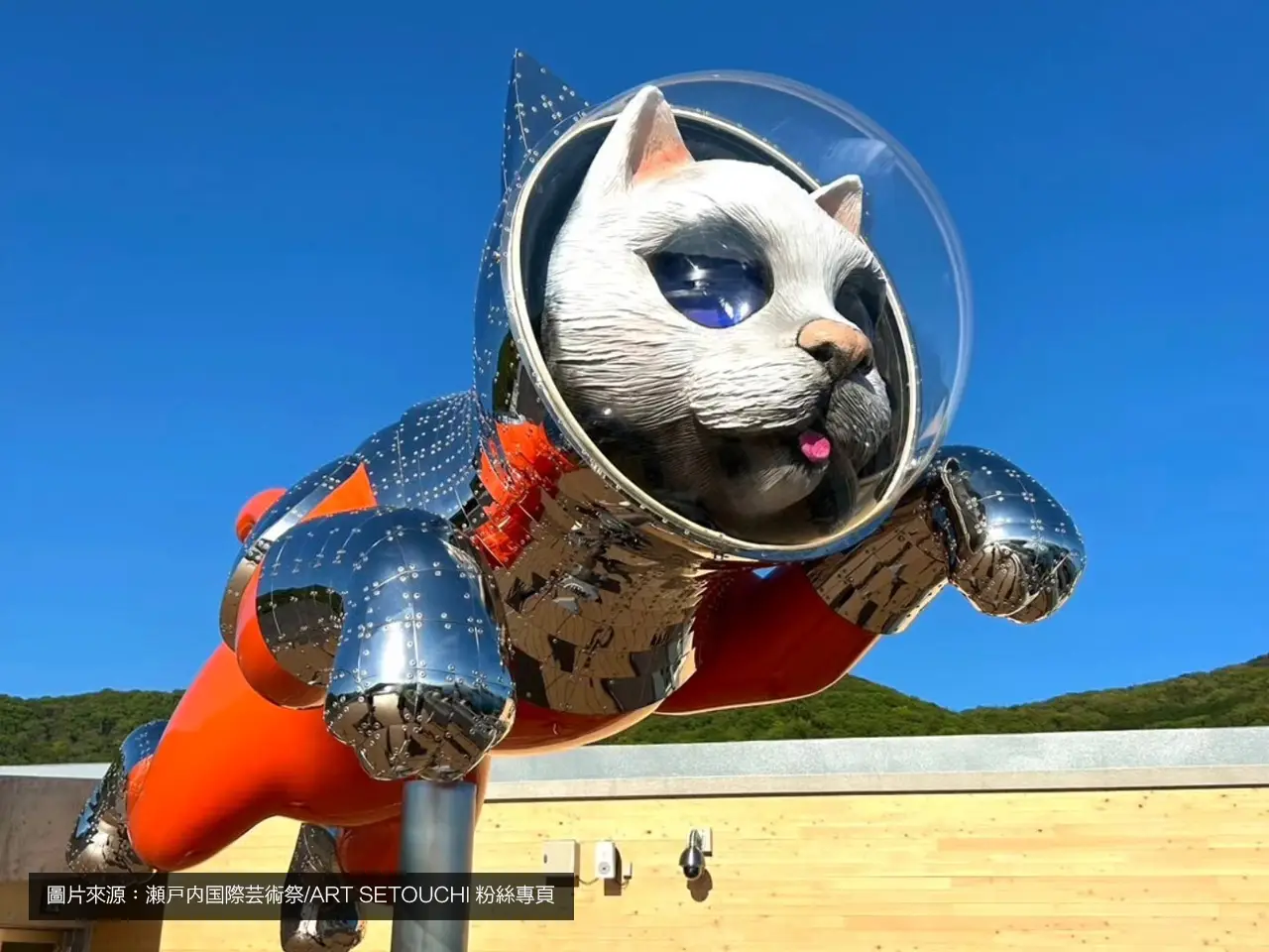 睽違3年造訪小豆島的作家表示,感受到島嶼以雙手環抱著他。本作品中融入期盼全球的民眾都能來到小豆島的心願,反映出島嶼多元的魅力。觀眾將在作品中感受身體與心靈和自然調和的體驗。