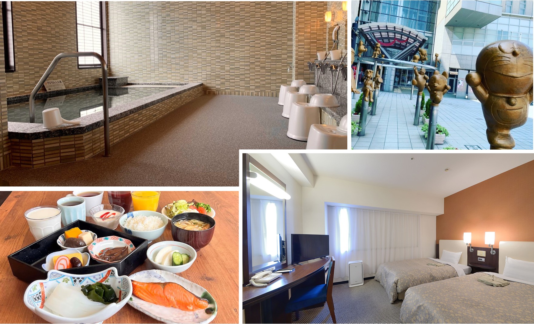「高岡 Manten Hotel 駅前」這座飯店最令人稱讚的,莫過於與高岡車站直接相連的步行天橋,即便遇到雨雪,也能輕鬆抵達。而最受期待的驚喜,莫過於飯店門口的「哆啦A夢銅像」!作為作者藤子·F·不二雄老師的故鄉,高岡市將世界級的「高岡銅器」工藝與經典動漫結合,讓您一踏出飯店,就能與這尊閃耀著金屬質感的哆啦A夢合影,為旅程增添無盡童趣與療癒感。
